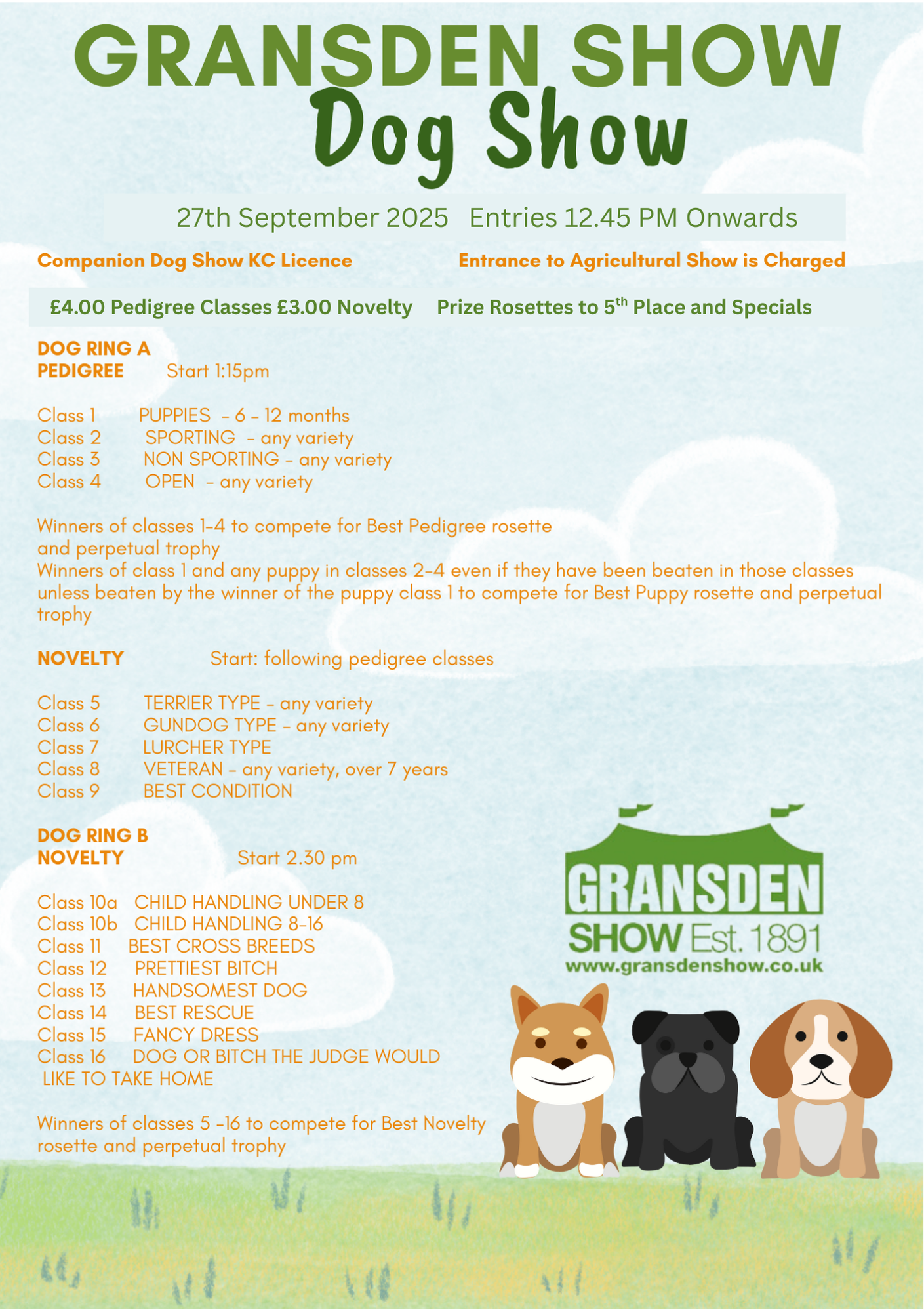 Dog Show Schedule All classes should be entered and entry fees paid at the Show on the day.